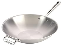 14" Stainless Stir Fry. Designed with a thick triple-layer disk of stainless steel and aluminum permanently bonded together to ensure fast and even heat distribution.